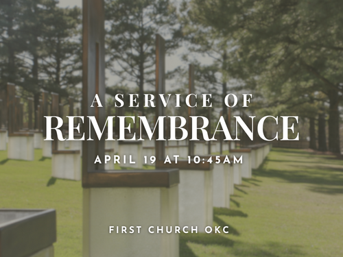 Join us at First Church for a special OKC Memorial Service, held in place of our regular Sunday worship.